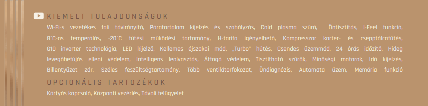 - Kivitel : Légcsatornázható klíma