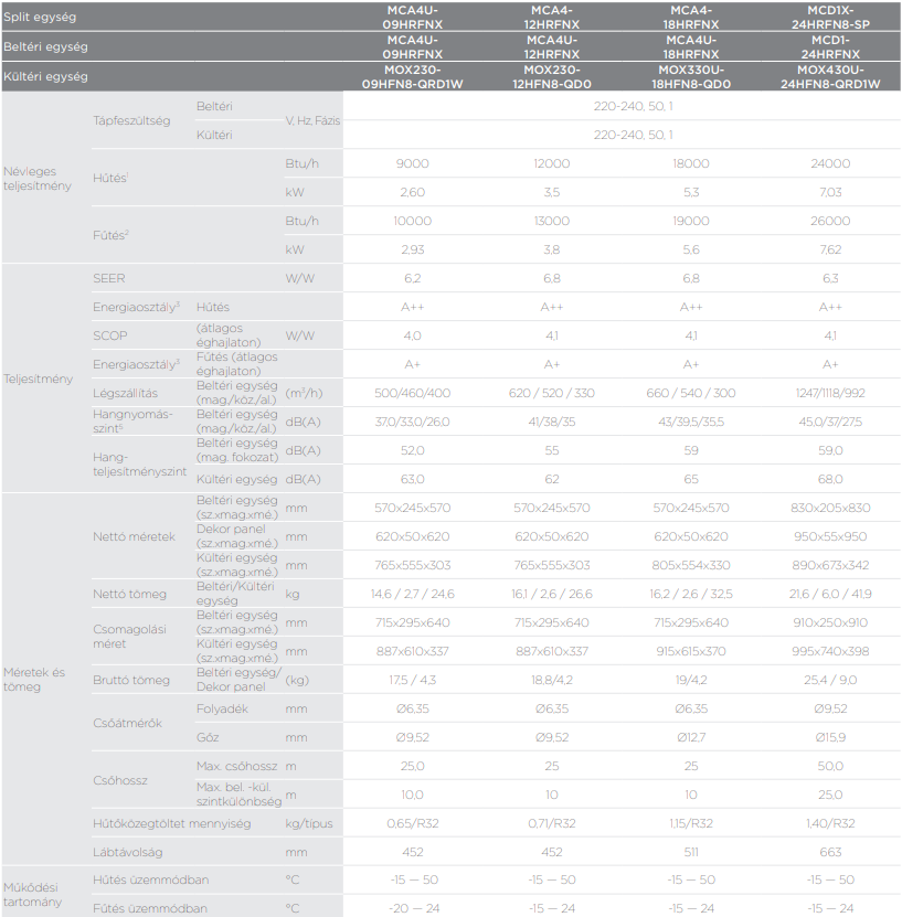 A Midea MCA4-12HRFNX-SP Kazettás split (R32, 3,5 kW, breezeless funkciós) fontos tulajdonságai: