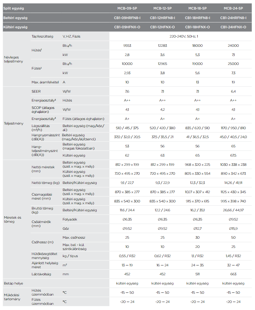 - Hűtő teljesítmény : 2,8 kW