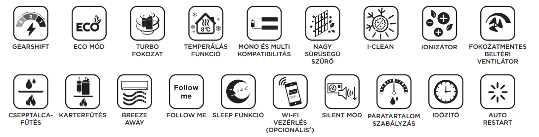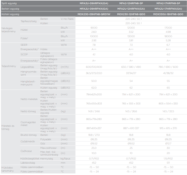 A Midea MFA2-17HRFN8-SP Konzol Inverteres Split klíma fontos tulajdonságai: